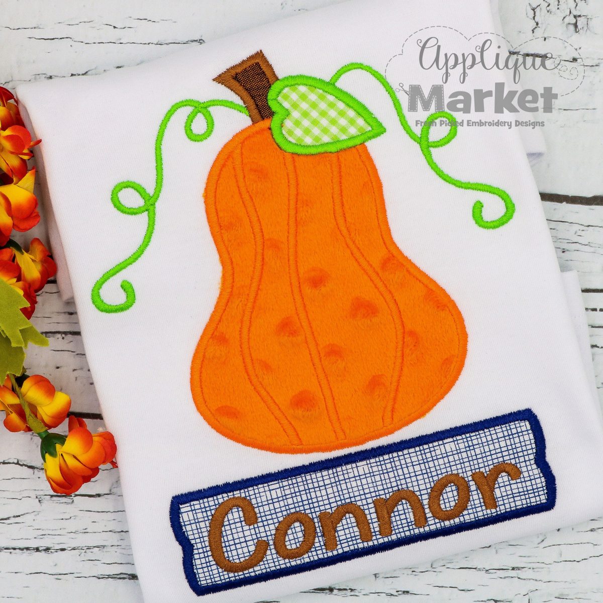Bring in the season with Applique Market’s great selection of special patterns. Create a festive fall outfit with this pumpkin applique design.