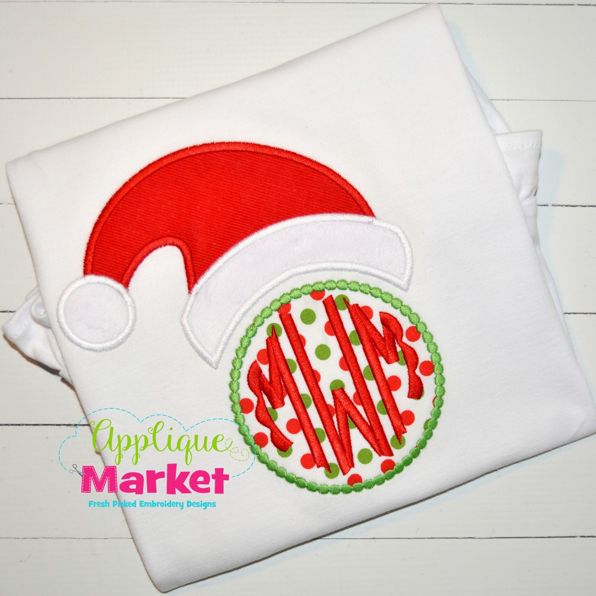 This Santa Hat Beaded Circle Monogram Top design includes 4×4, 5,0, 6.0, 7.0 and 8.0 inch.